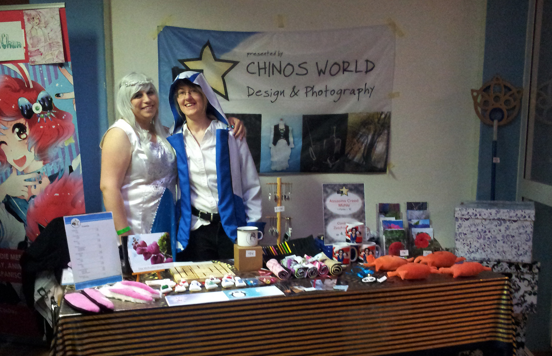 Kurz vor Beginn der Con kamen meine beiden Freundinnen, die mich als Standhelfer unterstützten.