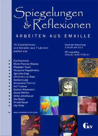 Plakat für die Kunstausstellung "Spiegelungen und Reflexionen - Arbeiten aus Emaille"